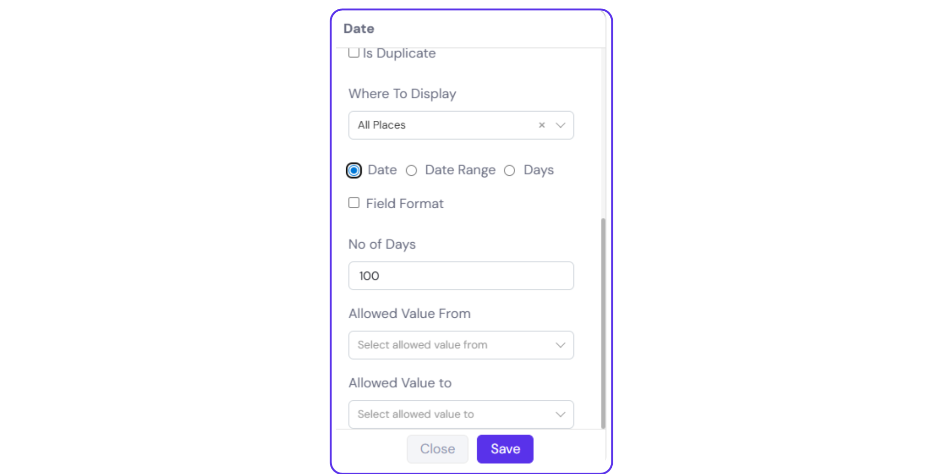 - Even with the above-mentioned fields, reminders will not be available if you select ‘Date Range’ or ‘Days’ as the date type.