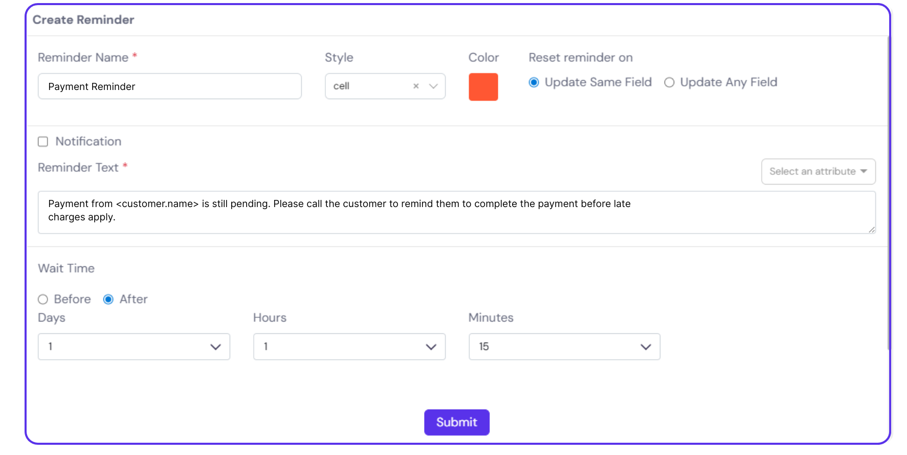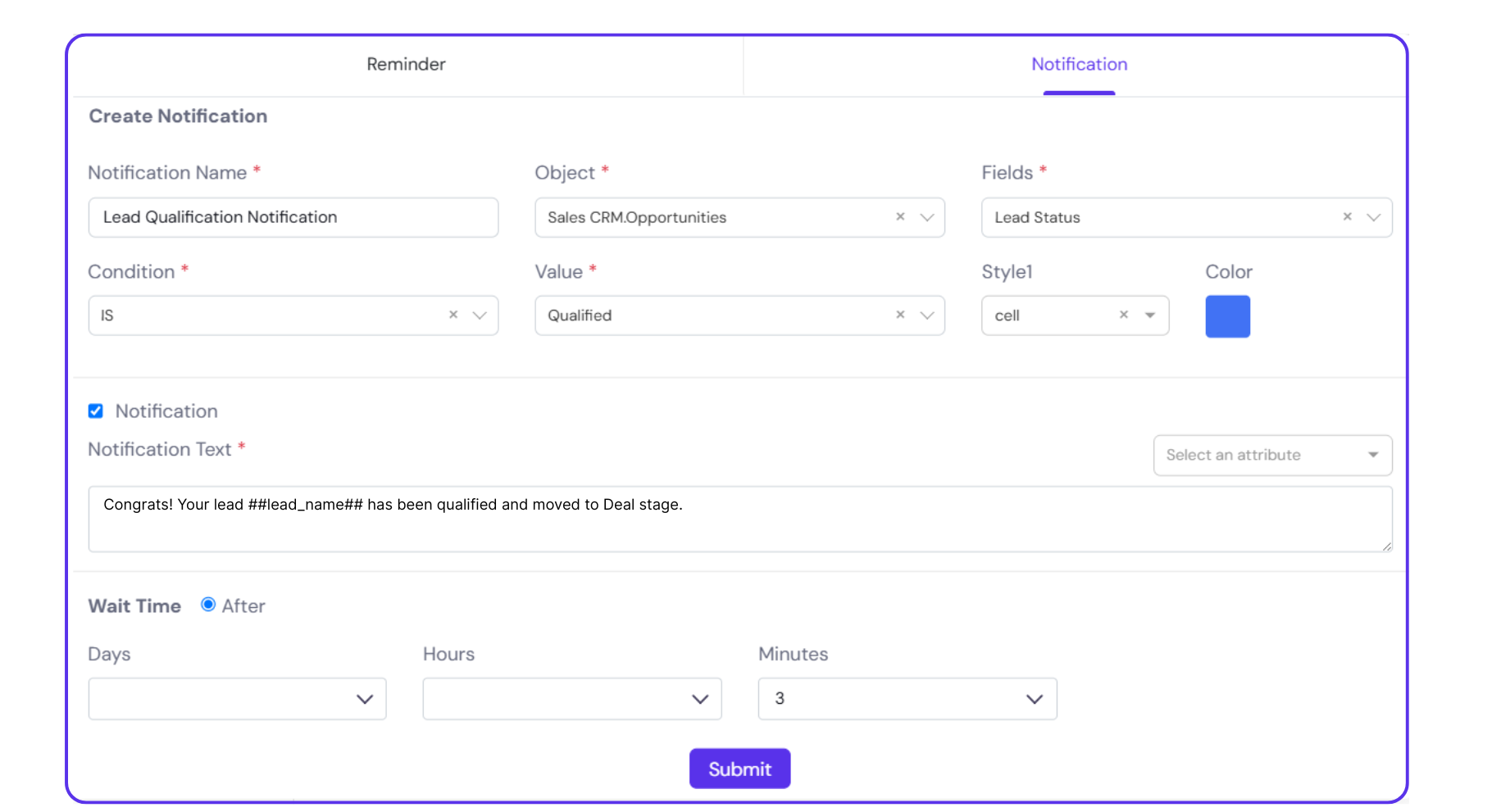 Step 7: Click ‘Submit’ to save the notification.