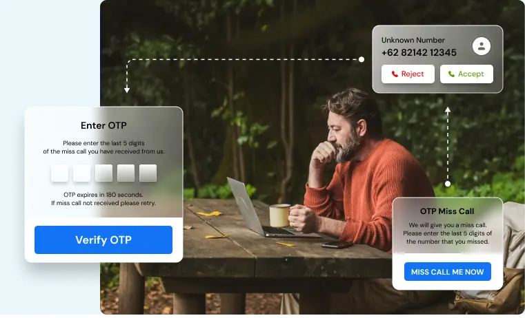 Add an extra layer of security on the web without increasing the complexity. Authenticate details with OTP or missed call verification.